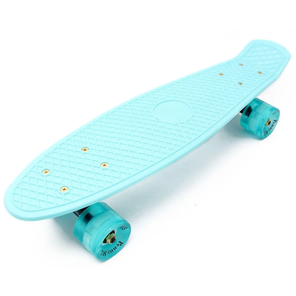 Пенниборд 22 имеет специальное покрытие с алмазным тиснением, которое предотвращает скольжение ног. Он достаточно широкий, чтобы сохранять равновесие, и на нем комфортно кататься.