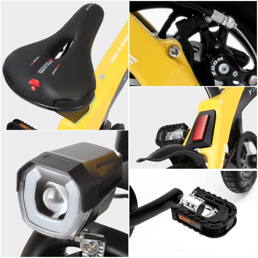 Электровелосипед оснащена 14-дюймовыми колесами, задним приводом, проверенной дисковой тормозной системой. Для удобства ездока производитель предусмотрел наличие задних и передних фонарей. С такими характеристиками райдер может смело передвигаться в тесное время суток и плохие погодные условия.