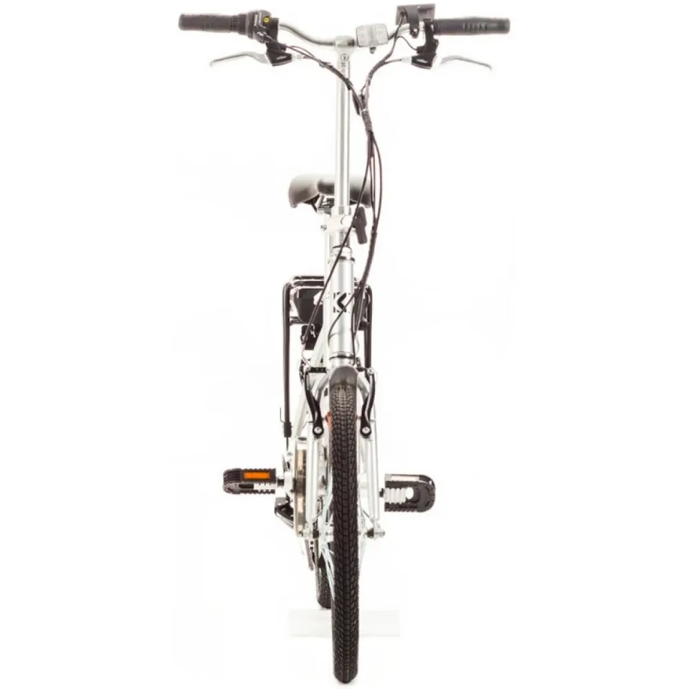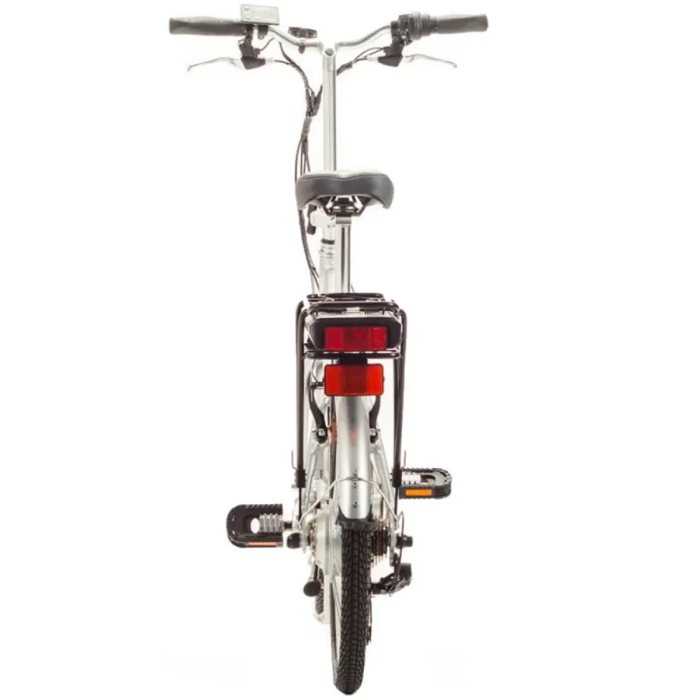 Велогибрид оформлен в современном дизайне. При массе 22 кг рассчитан на грузоподъемность до 110 кг. Способен разогнаться до безопасной для городской местности скорости – до 25 км/час и преодолеть без дополнительной подзарядки 35 км пути. Складная конструкция рамы упрощает процесс перевозки и хранения техники. Комфортабельное анатомическое седло исключает проблемы с нагрузкой на позвоночник, регулируется по ростовым параметрам райдера.