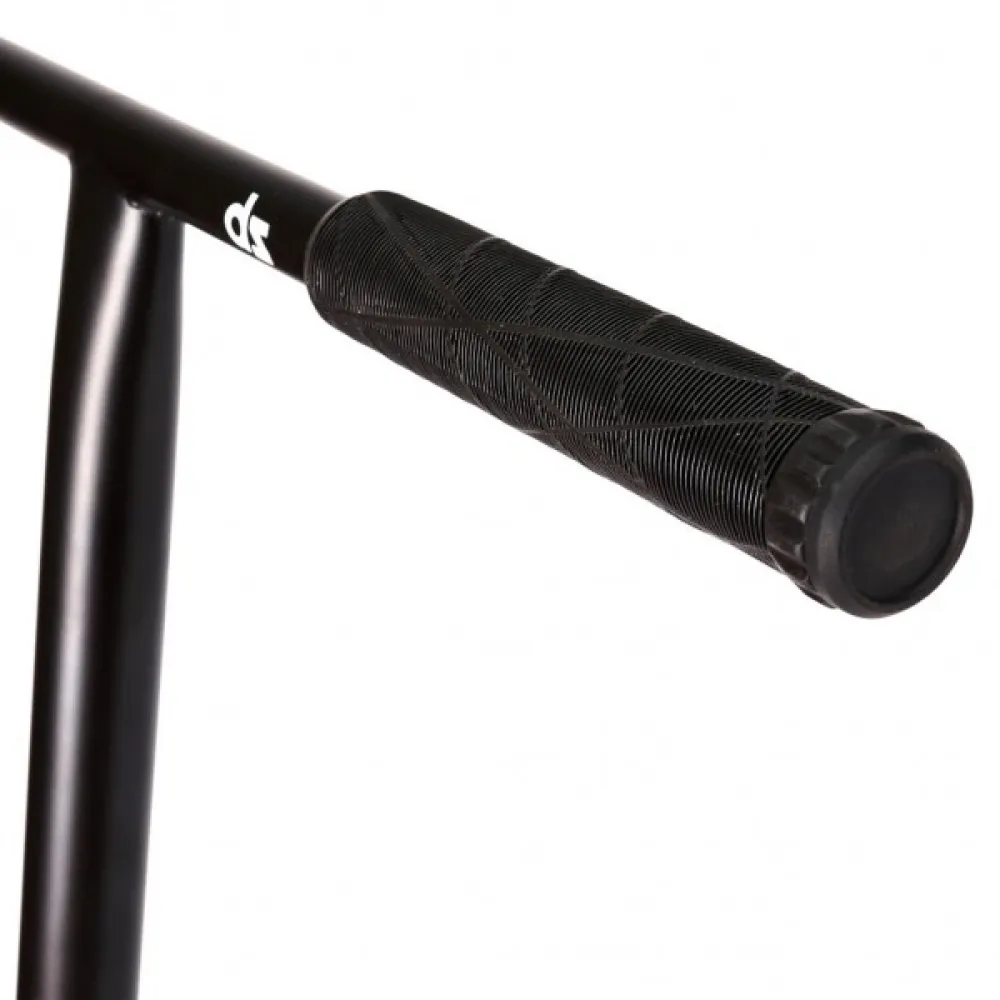 Т-образная форма руля высотой 720 мм рассчитана на райдеров с разными ростовыми параметрами. Надежно зафиксирована хомутом на 4-х болтах. Широкая дека размерами (560мм*140мм) покрыта среднезернистой брендовой шкуркой.